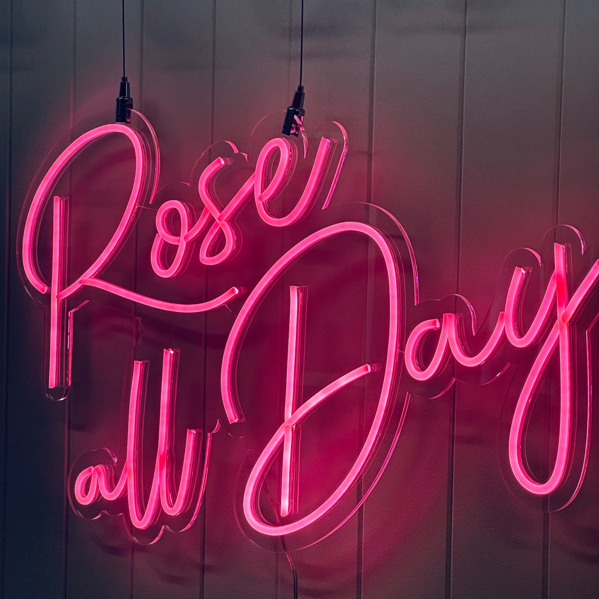 Bring playful sophistication into your home with the Rosé All Day neon sign. Its glowing hot-pink script adds a modern, feminine touch — perfect for kitchen bars, lounge spaces, or feature walls that deserve a pop of personality.